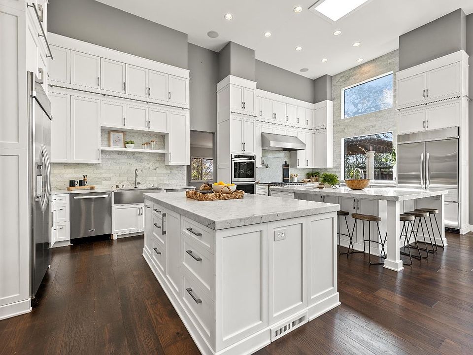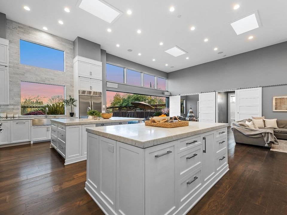 Escape into luxury in this private gated estate nestled on 2.3 acres in the heart of Roseville. This fully remodeled modern home with classic architectural details boasts designer finishes & custom upgrades throughout. The expansive kitchen was remodeled with no expense spared w/2 center islands, 4 ovens including a 10 burner BlueStar gas range, 2 built-in refrigerators, 2 dishwashers & 3 full size apron kitchen sinks. Carrara marble counters & backsplash, self closing premium wood cabinets & drawers, barista station and 12' cabinets with library ladder. Natural light abounds with spectacular 15' ceilings & multiple skylights throughout the home. Tucked away upstairs is your tranquil primary suite w/warm hardwood floors, spacious walk-in closet w/organization system & a retreat perfect for your home office, or even a nursery. Enjoy your morning coffee on your private deck w/views of the snow capped mountains.The luxurious master bath has quartz counters, a walk-in shower & soaking tub. Meander your way around this vast property so you can truly get a sense of how special it really is. Undeniable luxury, privacy & function, all w/in an easy drive to Sac, Tahoe, San Francisco, Napa & more. With too many features to list, this is a home that truly needs to be seen to be appreciated.