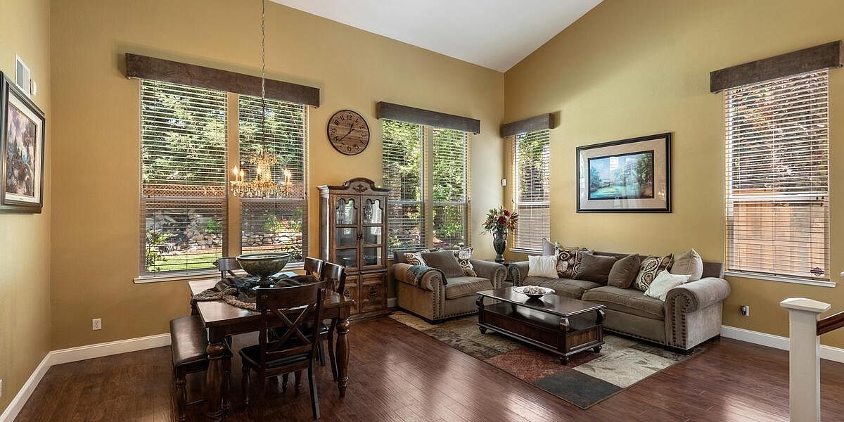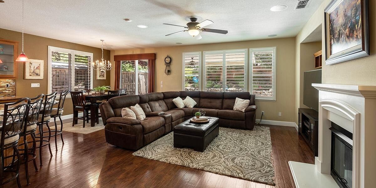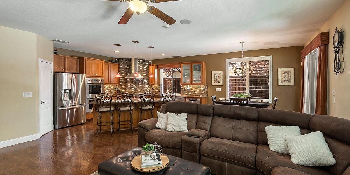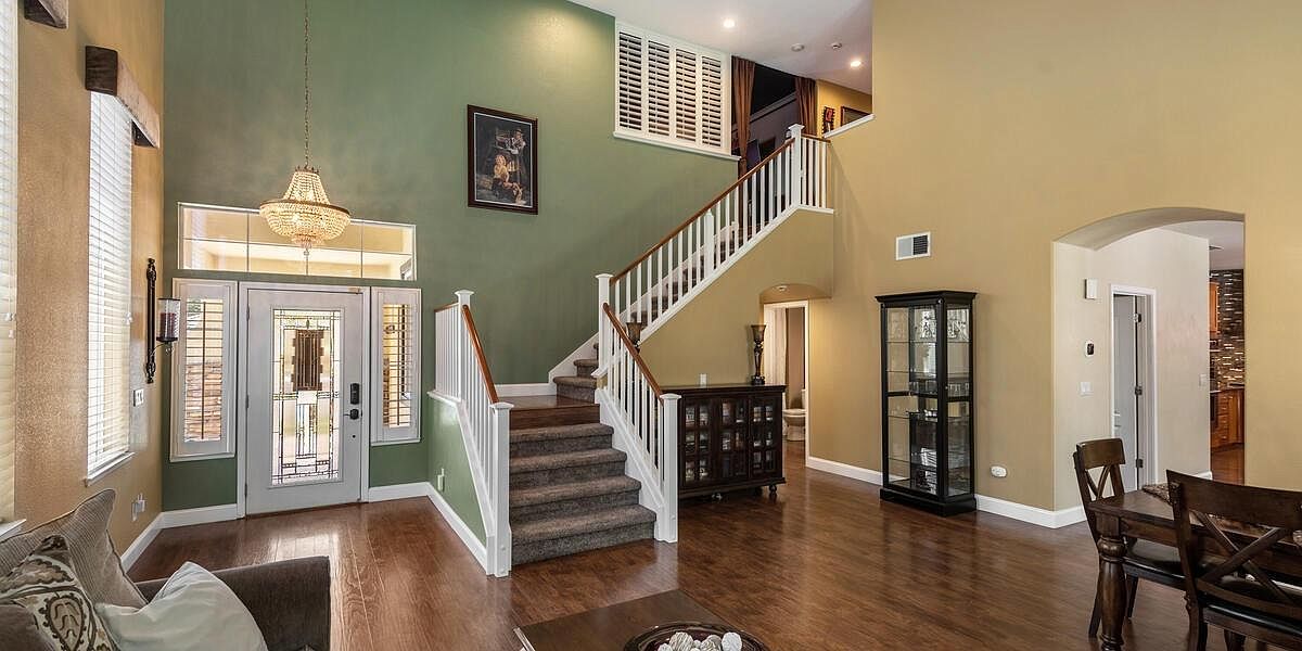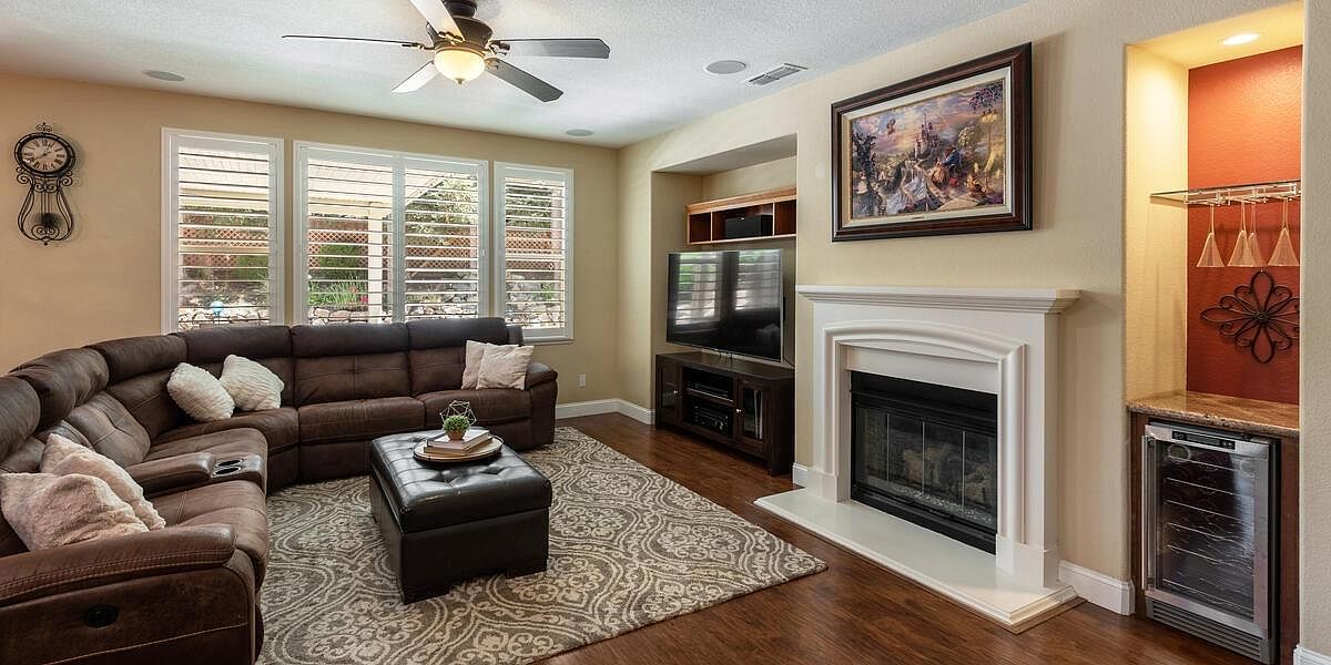 This meticulously maintained home boasts vaulted ceilings, a downstairs bedroom and bath, an inviting yard, & is located within walking distance to schools, parks, trails & more! The kitchen is a chef's dream with Wolf appliances, double oven, gas cooktop, dual dishwasher and large island perfect for entertaining. The 3-car split garage w/ storage cabinets and ceiling racks make organizing a breeze! Upstairs you'll find a theater room pre-wired for surround sound & is projector ready, 2 more guest beds, a spacious master retreat w/ sitting area, views of the nature preserve & serene master bath. Enjoy the peacefulness of your yard under your covered patio & listen to the sounds of your waterfall all while admiring your new fences & lush grass! New Twelve Bridges High School opens for this school year! With laminate floors, upgraded baseboards, UV air purifier for your HVAC, water softener, water purification system, solar & so much more, you'll want to make this house, your home TODAY!