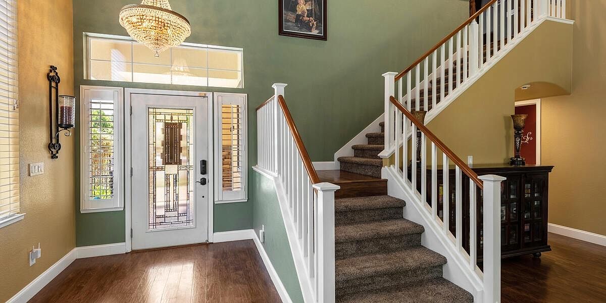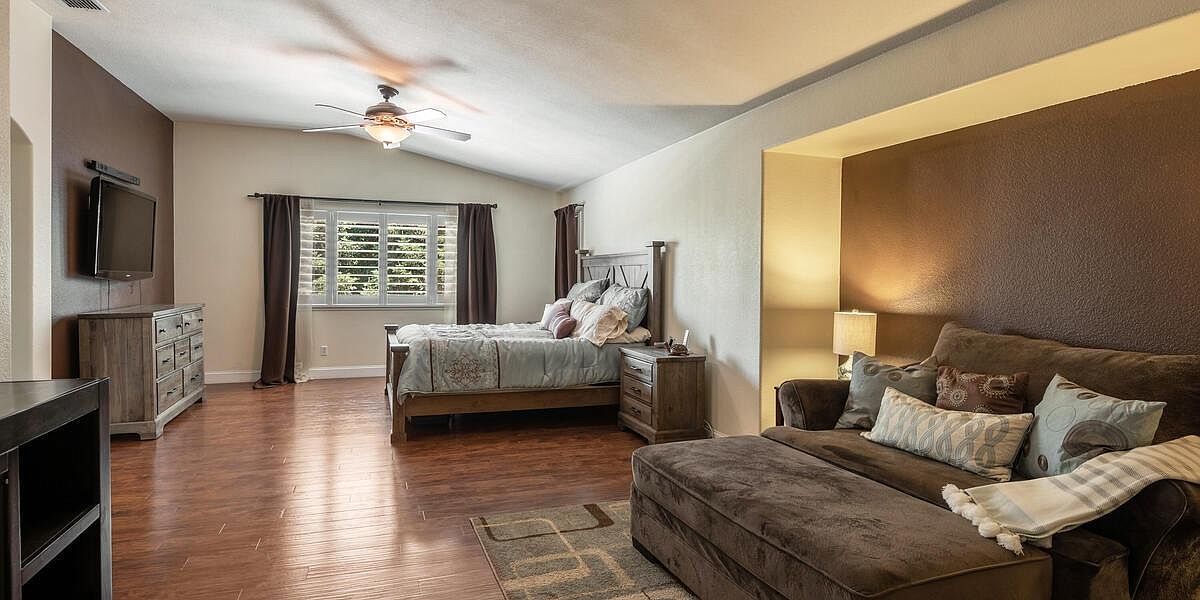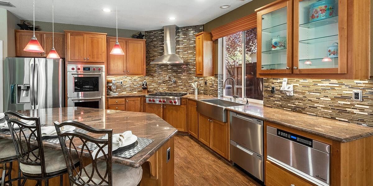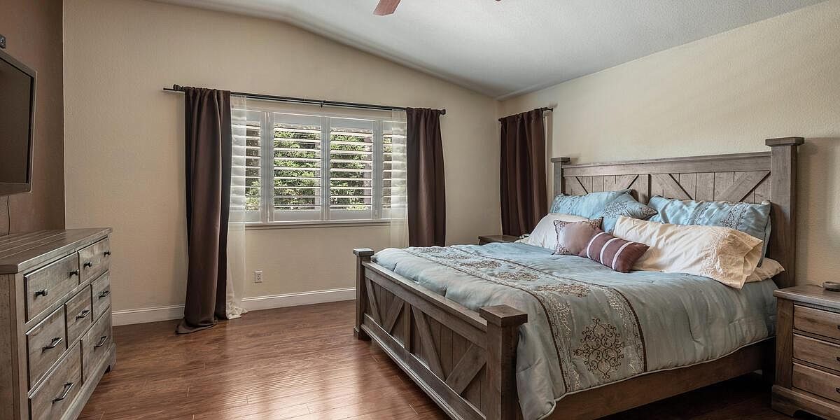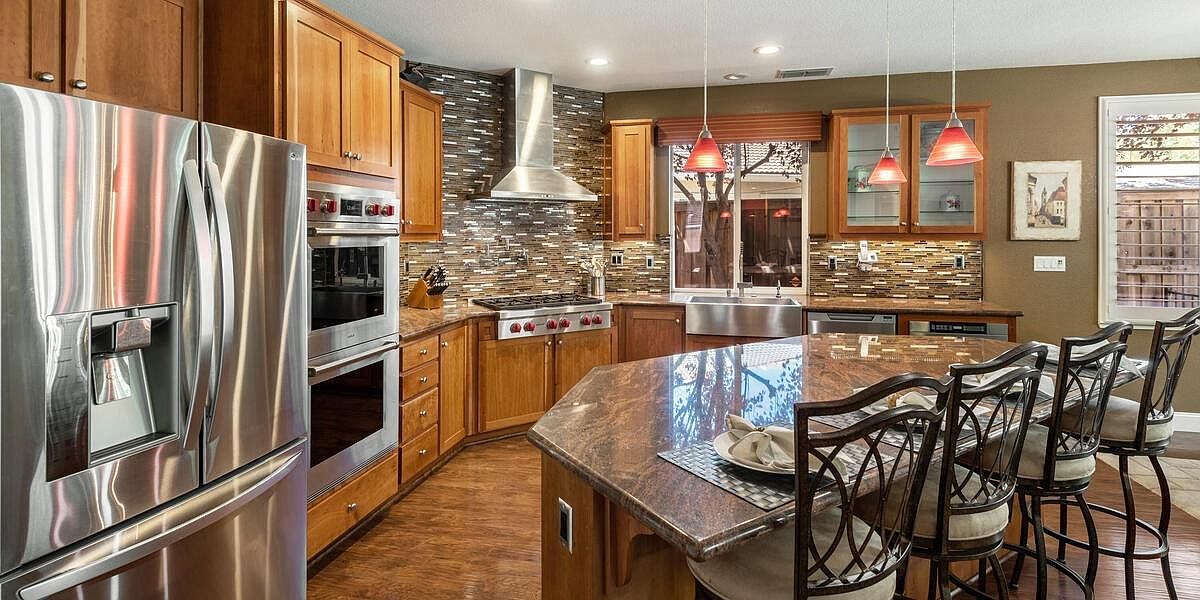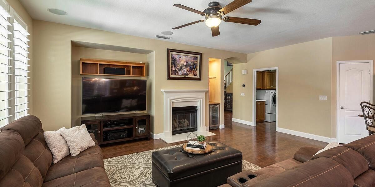 This meticulously maintained home boasts vaulted ceilings, a downstairs bedroom and bath, an inviting yard, & is located within walking distance to schools, parks, trails & more! The kitchen is a chef's dream with Wolf appliances, double oven, gas cooktop, dual dishwasher and large island perfect for entertaining. The 3-car split garage w/ storage cabinets and ceiling racks make organizing a breeze! Upstairs you'll find a theater room pre-wired for surround sound & is projector ready, 2 more guest beds, a spacious master retreat w/ sitting area, views of the nature preserve & serene master bath. Enjoy the peacefulness of your yard under your covered patio & listen to the sounds of your waterfall all while admiring your new fences & lush grass! New Twelve Bridges High School opens for this school year! With laminate floors, upgraded baseboards, UV air purifier for your HVAC, water softener, water purification system, solar & so much more, you'll want to make this house, your home TODAY!